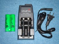 Ultrafire 3.7V 18650 2600mAh Lithium 充電池緑2本と充電器のセットです。