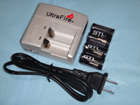 GTL CR123A 3.0V 1200mAh 充電池4本 黒 & 充電器(UltraFire)のセットです。
